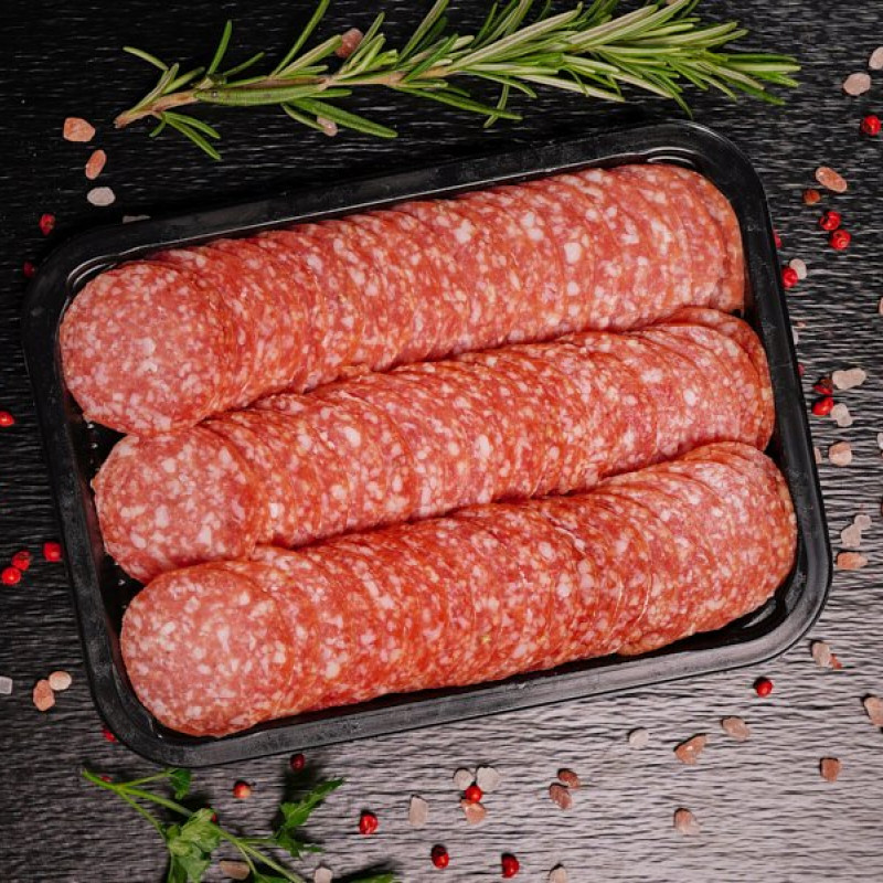 Sastāvs: Cūkgaļa, cūkgaļas speķis, pārtikas sāls,dekstroze,garšvielas,LAKTOZE,antioksidants askorbīnskābe,nātrija askorbāts,garšas pastiprinātājs mononātrija glutamāts,konservants nātrija nitrīts,dabīgie aromatizētāji,startkultūra. Apvalks nav ēdams.